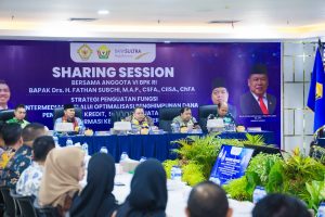 Gubernur Sultra turut menyampaikan apresiasi atas kehadiran Anggota VI BPK RI, Fathan Subchi yang telah berbagi ilmu dan memberikan arahan dalam sharing session bertema “Strategi Penguatan Fungsi Intermediasi melalui Optimalisasi Penghimpunan Dana dan Penyaluran Kredit serta Penguatan Sistem Ketahanan Siber di Himpunan Bank Sultra.” tersebut.