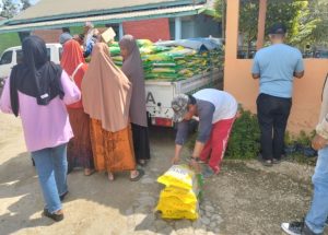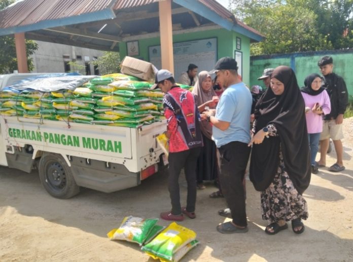 Suasana kegiatan berlangsung tertib dan lancar, terlihat warga dengan sabar menunggu giliran untuk memilih dan membawa pulang kebutuhan bahan pangan bagi keluarga mereka.